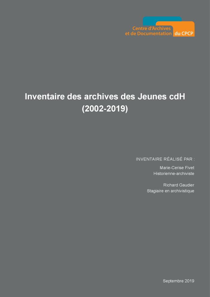 Depuis 2002, les archives des « Jeunes cdH » ont été conservées dans les bureaux de l’organisation de jeunesse politique située au siège du cdH au 45, rue des Deux-Églises à Bruxelles. Des versements réguliers sont réalisés à destination du centre d’archives et de documentation du CPCP qui complète ainsi le fonds régulièrement.