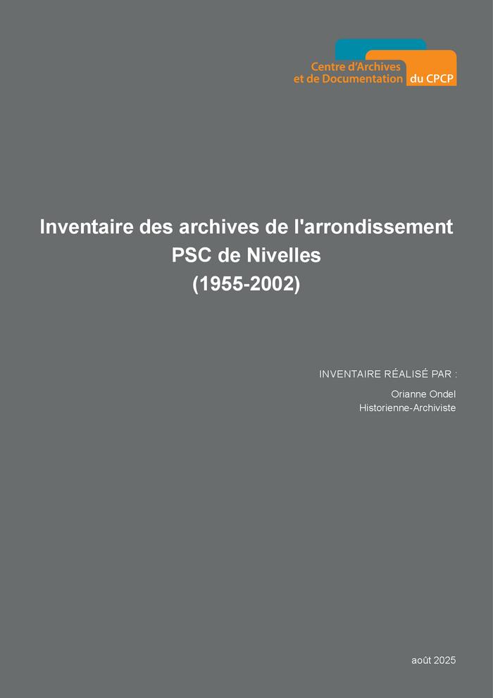 Concernant l'arrondissement PSC de Nivelles, il était composé de trois instances, similaires aux instances nationales : le bureau, le comité et la présidence (chacune de ces instances est présentée en temps utile dans l'inventaire). Parallèlement à celles-ci, diverses assemblées de travail et groupes de réflexion se sont tenus permettant soit la coordination d'actions, soit le traitement d'un sujet précis via, par exemple, la mise en place d'une commission. C'est aussi dans le cadre de cette fonction politique que l'arrondissement PSC de Nivelles a mené des réflexions de fonds sur la doctrine et le fonctionnement du parti.