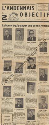 Imprimé électoral de la liste PSC d'Andenne réalisé à l'occasion des élections communales du 11 octobre 1970.