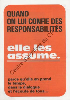 Imprimé électoral de la candidate PSC de Sombreffe Elisabeth Dispaux-Cornil réalisé à l'occasion des élections communales du 10 octobre 1982.