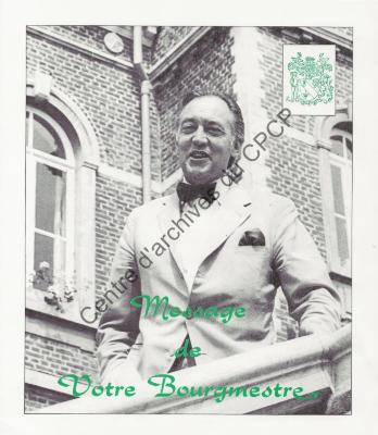 Imprimé électoral du bourgmestre PSC d'Ottignies-Louvain-la-Neuve Yves du Monceau de Bergendal réalisé à l'occasion des élections communales du 10 octobre 1982.
