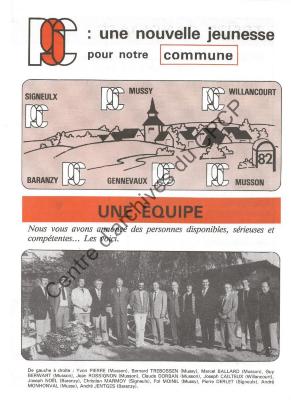 Imprimé électoral de la liste PSC de Musson réalisé à l'occasion des élections communales du 10 octobre 1982.