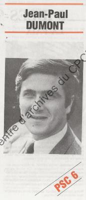 Imprimé électoral du candidat PSC Jean-Paul Dumont réalisé dans le cadre des élections européennes du 17 juin 1984.
