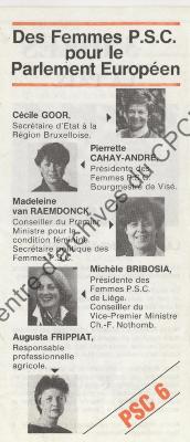 Imprimé électoral des Femmes PSC réalisé dans le cadre des élections européennes du 17 juin 1984.