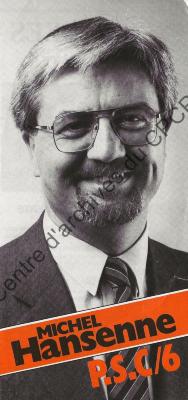 Imprimé électoral du candidat PSC Michel Hansenne réalisé dans le cadre des élections européennes du 17 juin 1984.