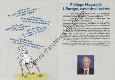 Imprimé électoral du Ministre PSC Philippe Maystadt réalisé à l'occasion des élections européennes du 18 juin 1989.
