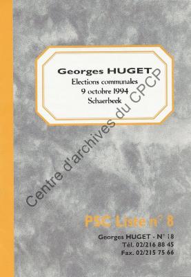 Imprimé électoral du candidat PSC Georges Huguet réalisé à l'occasion des élections communales et provinciales du 9 octobre 1994.
