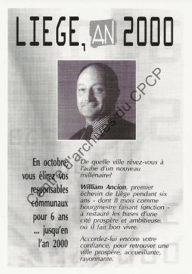 Imprimé électoral de l'échevin PSC de Liège William Ancion réalisé à l'occasion des élections communales et provinciales du 9 octobre 1994.