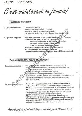 Imprimé électoral de la liste PSC de Lessines réalisé à l'occasion des élections communales et provinciales du 9 octobre 1994.