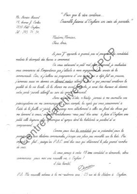 Imprimé électoral du candidat PSC Damien Buxant réalisé à l'occasion des élections communales et provinciales du 9 octobre 1994.