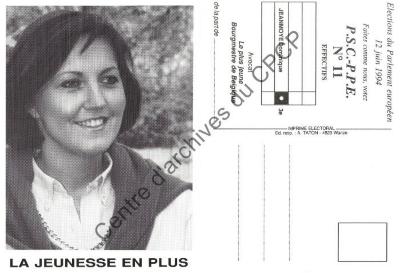Imprimé électoral de la candidate PSC Dominique Jeanmoye réalisé à l'occasion des élections européennes du 12 juin 1994.