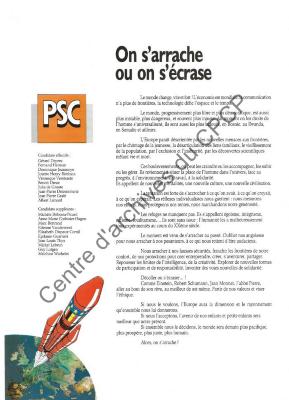 Imprimé électoral de la liste PSC réalisé à l'occasion des élections européennes du 12 juin 1994.