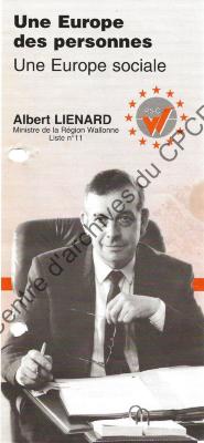 Imprimé électoral du candidat PSC Albert Liénard réalisé à l'occasion des élections européennes du 12 juin 1994.