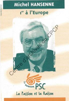 Imprimé électoral du candidat du nouveau PSC Michel Hansenne réalisé à l'occasion des élections européennes du 13 juin 1999.