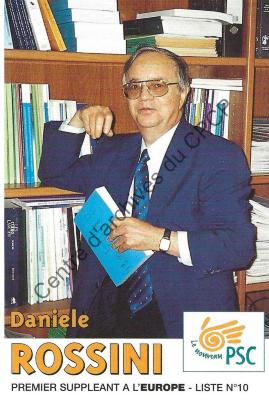 Imprimé électoral du candidat du nouveau PSC Daniele Rossini réalisé à l'occasion des élections européennes du 13 juin 1999.