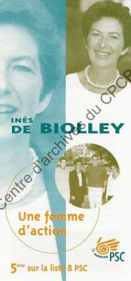 Imprimé électoral de la candidate du nouveau PSC Inès de Biolley réalisé à l'occasion des élections communales et provinciales du 8 octobre 2000.