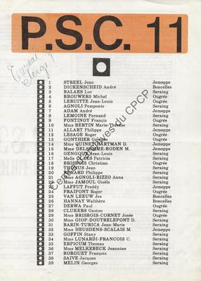 Imprimé électoral des candidats PSC de l'arrondissement de Liège réalisé à l'occasion des élections communales du 9 octobre 1988.