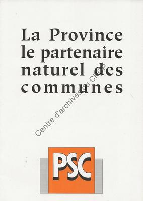Imprimé électoral des candidats PSC à la province pour le district de Tournai réalisé à l'occasion des élections communales et provinciales du 9 octobre 1994.
