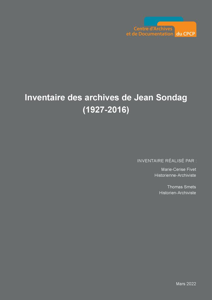 À l’issue de ses études gréco-latines au Petit Séminaire à Bastogne durant la Seconde Guerre mondiale (1940-1946) et de ses études supérieures à l’École sociale de Louvain, Jean Sondag figure parmi les fondateurs du Service professionnel de la Jeunesse agricole (SPJA) en 1949. Il y est inspecteur (1950), puis secrétaire général (1959). En 1959, il participe à la fondation du Comité européen des Jeunes Agriculteurs et, en 1964, est chargé de mission puis chef de service auprès de l’Alliance agricole belge. En 1972, il est chargé de mission auprès du ministre de l’Agriculture. Représentant des organisations agricoles, Jean Sondag est désigné à ce titre au sein du tout nouveau Conseil économique régional de Wallonie que le ministre Fernand Delmotte installe à Namur (16 octobre 1971) en application de la Loi Terwagne de juillet 1970 sur la décentralisation économique. En 1973, il est désigné comme représentant des associations agricoles au sein du Conseil d’administration de la toute nouvelle Société de développement régional de Wallonie. En tant que membre du CERW de 1971 à 1985, il est l’un des fervents défenseurs de la mise en place d’une régionalisation définitive.