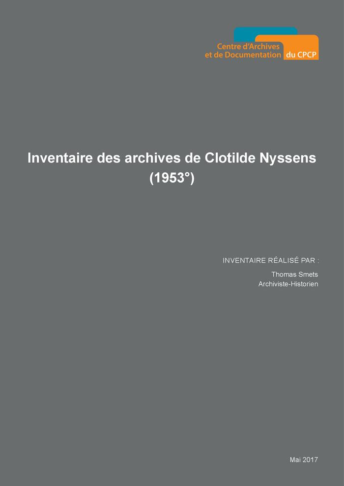 Depuis la fin de ses mandats politiques, les archives de Clotilde Nyssens ont été conservées à son domicile de Schaerbeek. Le 10 novembre 2016, les archivistes du CAD ont pris en charge ces archives suite à la signature d’une convention de don.