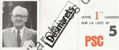 Imprimé électoral de l'échevin PSC de Uccle José Desmarets réalisé à l'occasion des élections communales du 10 octobre 1982.