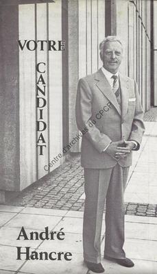 Imprimé électoral de André Hancre, candidat de la liste Intérêts Communaux (tendance PSC) d'Ottignies-Louvain-la-Neuve, réalisé à l'occasion des élections communales du 10 octobre 1982.