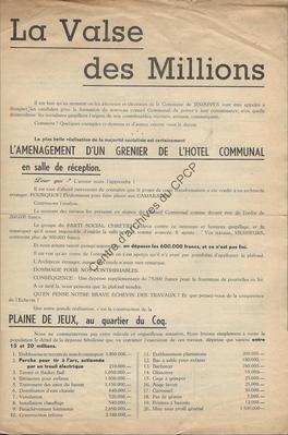 Imprimé électoral de la liste PSC de la commune de Jemappes réalisé à l'occasion des élections communales du 12 octobre 1952.