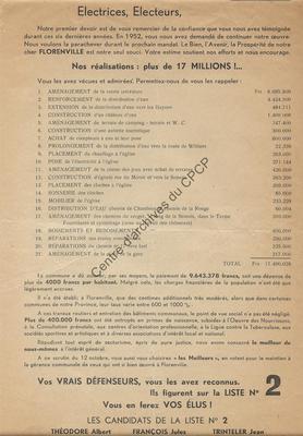 Imprimé électoral de la liste PSC de la commune de Florenville réalisé à l'occasion des élections communales du 12 octobre 1958.