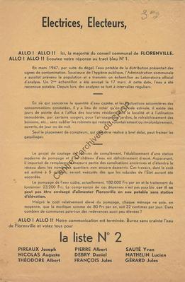 Imprimé électoral de la liste PSC de la commune de Florenville réalisé à l'occasion des élections communales du 12 octobre 1952.