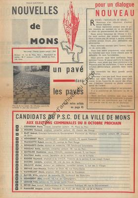 Imprimé électoral de la liste PSC de la ville de Mons réalisé à l'occasion des élections communales du 11 octobre 1964.