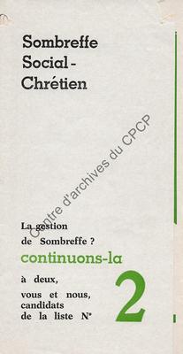 Imprimé électoral de la liste PSC de la commune de Sombreffe réalisé à l'occasion des élections communales du 11 octobre 1970.
