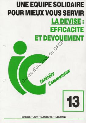 Imprimé électoral de la liste Intérêts Communaux (tendance PSC) de la commune de Sombreffe réalisé à l'occasion des élections communales et provinciales du 9 octobre 1994.