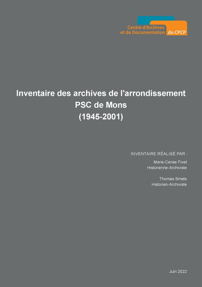 Le 10 août 2021, Lionel Pistone, président de l'arrondissement cdH de Mons, a versé au Centre d'archives du CPCP les archives PSC de l'arrondissement. Jusqu'alors, ces archives étaient conservées dans la cave des anciens locaux de l'arrondissement sis au 42 de la rue de Bertaimont à Mons.