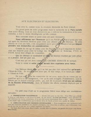 Imprimé électoral de la liste PSC de la commune de Lens réalisé à l'occasion des élections communales du 12 octobre 1952.