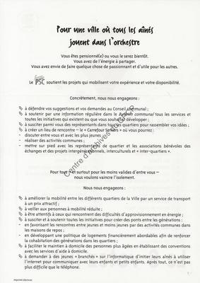 Imprimé électoral de la liste « PSC plus » à Ottignies-Louvain-la-Neuve réalisé à l'occasion des élections communales et provinciales du 8 octobre 2000.