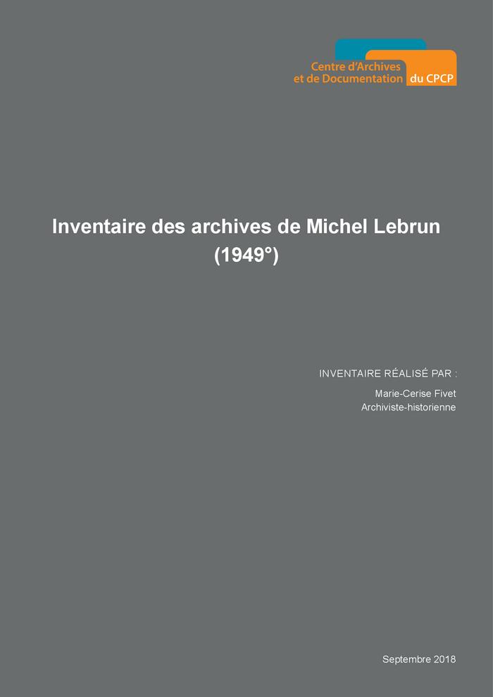 Les archives de Michel Lebrun ont été conservées à son bureau de Viroinval. Le 26 octobre 2016, suite à la signature d’une convention de don, ces dernières ont été prises en charge par les archivistes du Centre d’Archives et de Documentation du CPCP.
