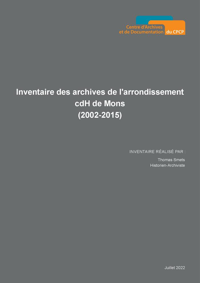 Le 10 août 2021, Lionel Pistone, président de l'arrondissement cdH de Mons, a versé au Centre d'archives du CPCP les archives PSC et cdH de l'arrondissement. Jusqu'alors, ces archives étaient conservées dans la cave des anciens locaux de l'arrondissement au n° 42 de la rue de Bertaimont à Mons.