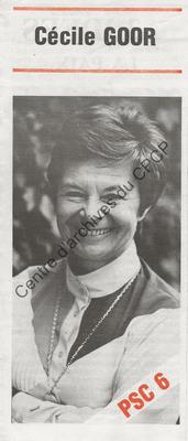 Imprimé électoral de la Secrétaire d'État bruxelloise PSC Cécile Goor réalisé dans le cadre des élections européennes du 17 juin 1984.