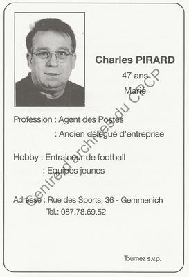 Imprimé électoral du candidat du Nouveau PSC de Plombières Charles Pirard réalisé à l'occasion des élections communales et provinciales du 8 octobre 2000.