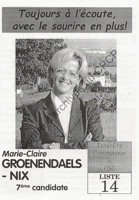Imprimé électoral des candidats du Nouveau PSC de Welkenraedt Marie-Claire Groenendaels-Nix et Georgs Collard réalisé à l'occasion des élections communales et provinciales du 8 octobre 2000.