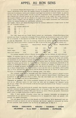 Imprimé électoral de la liste PSC de la commune de Ophain-Bois-Seigneur-Isaac réalisé à l'occasion des élections communales du 12 octobre 1952.