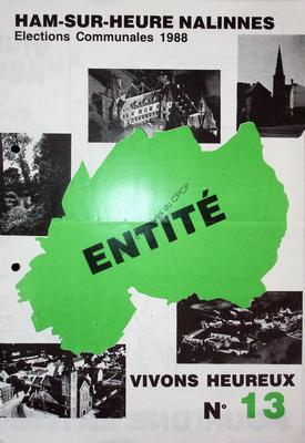 Imprimé électoral de la liste PSC de Ham-sur-Heure Nalinnes réalisé à l'occasion des élections communales du 9 octobre 1988.