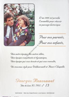 Imprimé électoral du candidat PSC Georges Rensonnet réalisé à l'occasion des élections communales du 9 octobre 1994.