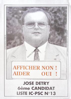 Imprimé électoral du candidat PSC José Detry réalisé à l'occasion des élections communales du 9 octobre 1994.
