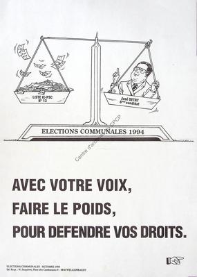 Imprimé électoral du candidat PSC José Detry réalisé à l'occasion des élections communales du 9 octobre 1994.