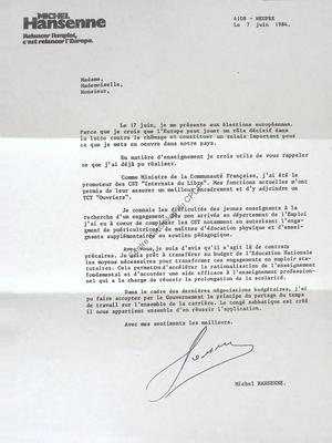 Imprimé électoral du Ministre PSC Michel Hansenne réalisé dans le cadre des élections européennes du 17 juin 1984.