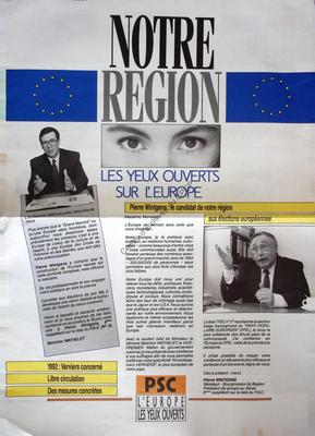 Imprimé électoral du PSC de la province de Liège réalisé à l'occasion des élections européennes du 18 juin 1989.