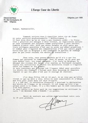 Imprimé électoral du président du PSC Gérard Deprez réalisé à l'occasion des élections européennes du 18 juin 1989.