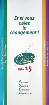 Imprimé électoral de la liste Oser (tendance Nouveau PSC) à Waimes réalisé à l'occasion des élections communales et provinciales du 8 octobre 2000.