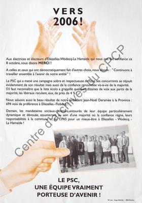Imprimé électoral de la liste PSC de Ellezelles réalisé à l'occasion des élections communales et provinciales du 8 octobre 2000.